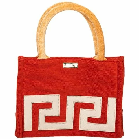 Iosifina’s collection of handbags are also handmade with Greek attention to detail and an interplay of cultural motifs. These attractive Small Tote Bags are crafted from skillfully woven fabric with contrasting colours and a leather meander at the centre. The gold toned Iosifina logo plate at the front just sets it off. Wear it proudly over your arm and you’re ready for lunch in the Greek Riviera