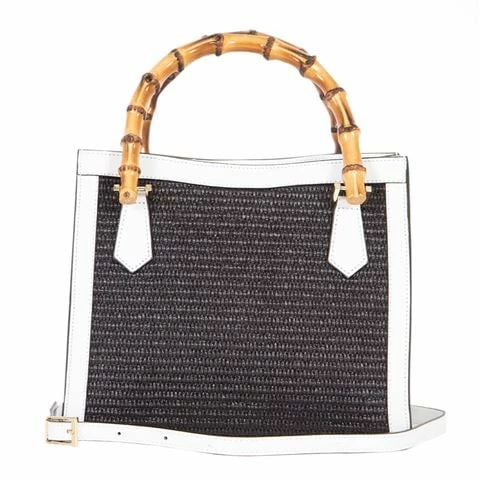 Make a statement with the Kendall Bamboo Handle Bag. It features a combination of leather and a weaving effect on the exterior, with bamboo handles for a unique touch. Thereโs a spacious main compartment with internal pockets for additional storage. Carry it on your arm or go crossbody with the detachable strap. A super chic day to night.