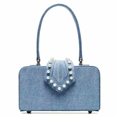The Fey In The 50s is inspired by the boxy shape of handbags in the rock and roll era. Covered in soft blue denim cotton and studded with faux pearls, this is the key accessory to take out with the ladies who lunch. The box also has luxurious cream leather lining and comes with its own Amalfi-inspired silk dust bag.