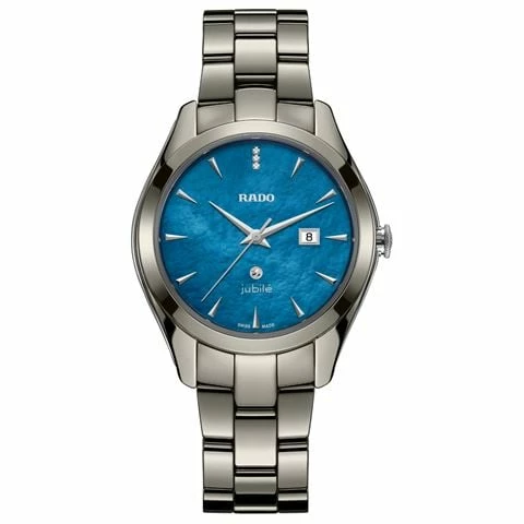 Other features include rhodium-coloured, dauphine hands and applied indexes, a date window at 3 o’clock and a moving rhodium-coloured tennis ball centred in the lower half at 6 o’clock. Both the monobloc case and 3-row bracelet are fashioned in Rado’s signature polished plasma high-tech ceramic.